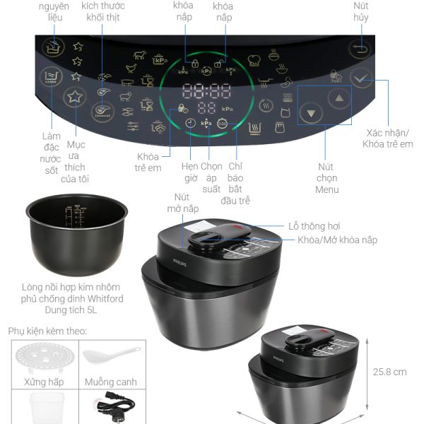 Nồi áp suất điện Philips HD2151/66 (5.0L)