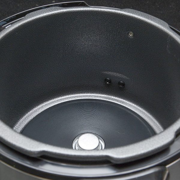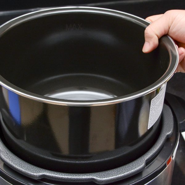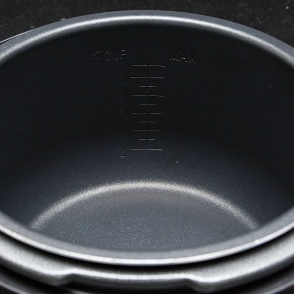 Nồi áp suất có 2 lòng nồi: 1 lòng nồi chống dính chuyên dùng để nấu cơm, nấu cháo. Lòng nồi không chống dính thích hợp làm các món thức ăn mặn.
