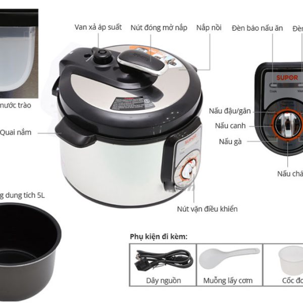 Supor CYYB50YA10VN-100 là dòng nồi áp suất điện cơ với dung tích 5 lít đáp ứng nhu cầu sử dụng cho gia đình, có thể lượng thực phẩm rất lớn.
