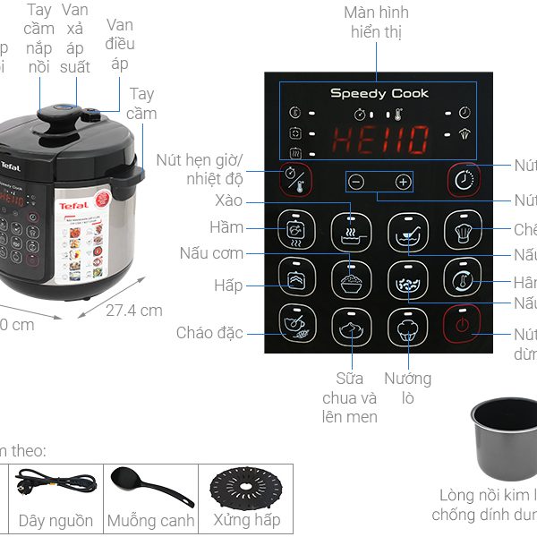 Nồi áp suất điện Tefal Speedy Cook CY222D68 5 lít là giải pháp cho những bữa ăn đa dạng và giàu dinh dưỡng, bạn có thể tha hồ trổ tài nấu nhiều món ngon chỉ với 1 nồi. Thiết bị với nhiều chương trình tích hợp, tiện ích hữu dụng và tính năng an toàn, đảm bảo cho khách hàng sử dụng thuận tiện và dễ dàng, hứa hẹn là sản phẩm đa năng trong căn bếp gia đình.