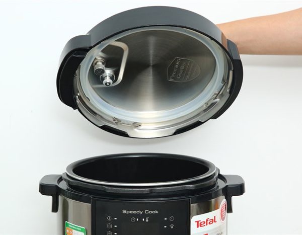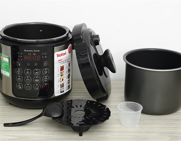 – Nồi áp suất Tefal này có thiết kế nhỏ gọn, màu đen – xám trung tính, góp phần làm tăng vẻ hiện đại, thời thượng cho căn bếp.