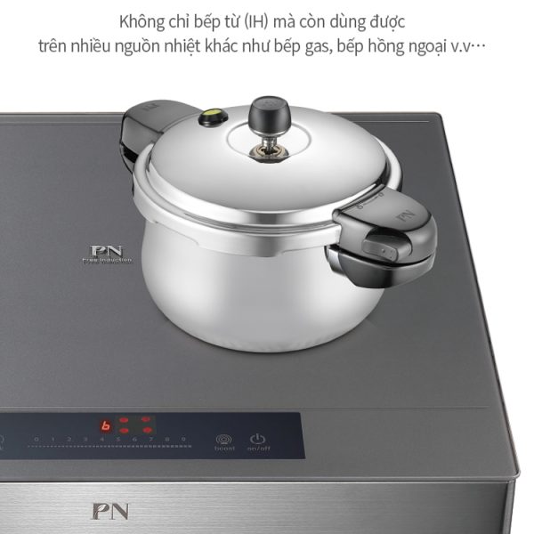 Nồi áp suất Inox IH POONGNYUN [PN] HNHPC-10(IH) dung tích 6.0 lít nhập khẩu từ Hàn Quốc thu hút ánh nhìn với thiết kế theo phong cách Châu Âu hài hòa với cảm giác sang trọng, hiện đại và tinh tế tăng độ thẩm mỹ cho nhà bếp cũng như phù hợp với nhu cầu của người sử dụng tiện lợi cho việc chế biến các món ăn khác nhau cho gia đình như hầm, luộc, kho, hấp, nấu cháo, nấu cơm, nấu cơm trộn, nấu gạo lức… hay chế biến những món yêu cầu độ mềm, cần nấu trong thời gian ngắn [30 – 90 phút] như hầm xương, gân… Bên cạnh đó, lớp Inox không gỉ bên ngoài giữ nồi áp suất lâu phai màu và không mau dơ.