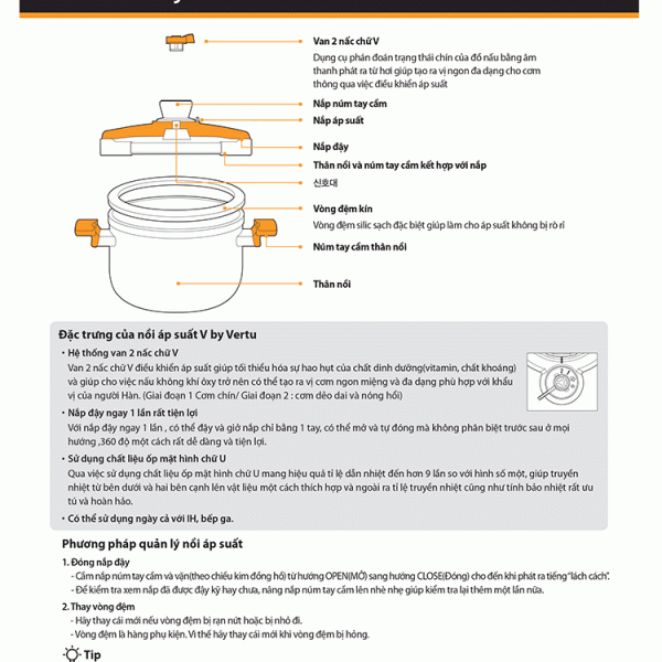 Nồi áp suất Inox 3 lớp POONGNYUN (PN) VBVPC-08 là sản phẩm không chứa chất gây ung thư “PFOA” với các bộ phận của nồi áp suất tách rời được giúp bạn thuận tiện cho việc vệ sinh. Ngoài ra, với thiết kế tay cầm chắc chắn giúp bạn dễ dàng cầm nắm, di chuyển sản phẩm. Không chỉ vậy, ghim inox kèm theo sản phẩm giúp bạn dễ dàng vệ sinh nút tín hiệu của nồi áp suất sau mỗi lần sử dụng. Hơn thế nữa, với thiết kế đóng mở nắp thế hệ mới “One Touch” giúp bạn dễ dàng đóng mở nắp mà không dùng nhiều lực.