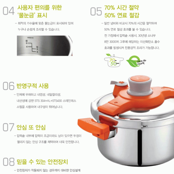 Toàn bộ cấu trúc thép không gỉ cao cấp SUS304 với 3 lớp nguyên khối thân & đáy [STS+ALU+STS] dầy 2.5mm và công nghệ đáy “U-Clad” với kỹ thuật cán nóng “Hot Rolling”, nồi áp suất Inox 3 lớp IH POONGNYUN (PN) VBVPC-08 tối đa hóa hiệu suất dẫn và giữ nhiệt nhanh hơn 9 lần làm thức ăn chín đều cực nhanh mà thức ăn không bị cháy khét, tiết kiệm thời gian cũng như chi phí nhiên liệu nấu và giảm sự phá hủy chất dinh dưỡng trong quá trình nấu ăn một cách hiệu quả.