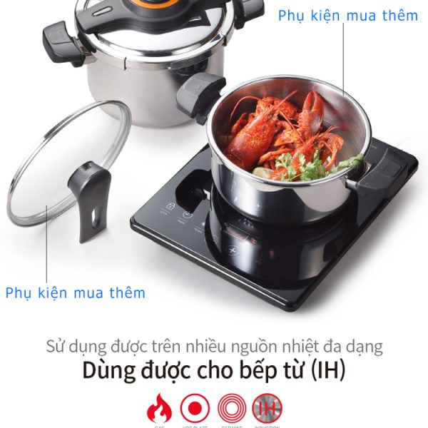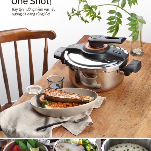 Nồi áp suất Inox IH cao cấp POONGNYUN [PN] VTSPC-10 dung tích 5.5 lít nhập khẩu từ Hàn Quốc thu hút ánh nhìn với thiết kế theo phong cách Châu Âu hài hòa với cảm giác sang trọng, hiện đại và tinh tế tăng độ thẩm mỹ cho nhà bếp cũng như phù hợp với nhu cầu của người sử dụng tiện lợi cho việc chế biến các món ăn khác nhau cho gia đình như hầm, luộc, kho, hấp, nấu cháo, nấu cơm, nấu cơm trộn, nấu gạo lức… hay chế biến những món yêu cầu độ mềm, cần nấu trong thời gian ngắn [30 – 90 phút] như hầm xương, gân… Bên cạnh đó, lớp Inox không gỉ bên ngoài giữ nồi áp suất lâu phai màu và không mau dơ.
