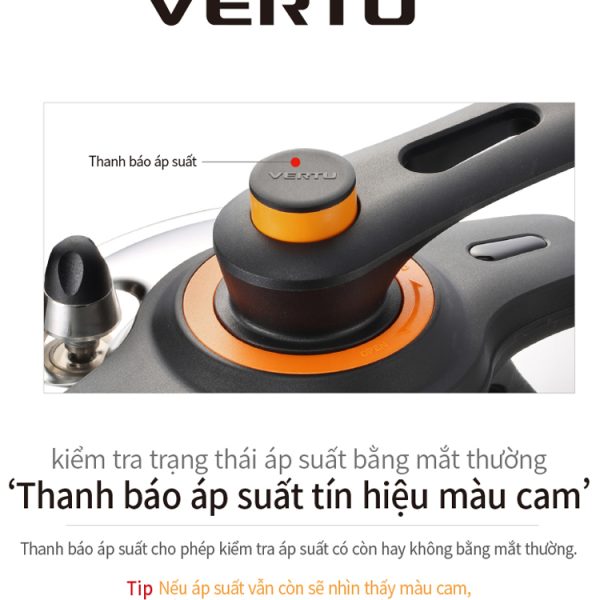 Nồi áp suất Inox từ tính POONGNYUN (PN) VTSPC-10 với nút tín hiệu được thiết kế hạn chế tối đa lượng hơi nước thoát ra ngoài sẽ giữ được hầu hết hương vị và dinh dưỡng của thực phẩm trong món ăn đặc biệt là những thực phẩm kỵ khí. Ngoài ra, thang đo quy định tối đa và tối thiểu mực nước tương ứng với lượng thực phẩm cần nấu và chế độ nấu được khắc trong lồng nồi giúp bạn dễ dàng, thuận tiện đo lường lượng thực phẩm và nước phù hợp khi nấu ăn hàng ngày. Hơn thế nữa, với thiết kế đóng mở nắp thế hệ mới 360º “One Touch” bằng nút vặn giúp bạn dễ dàng đóng mở nắp mà không dùng nhiều lực