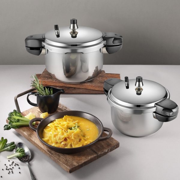 Nồi áp suất Inox IH POONGNYUN [PN] HNVPC-06(IH) dung tích 3.2 lít nhập khẩu từ Hàn Quốc thu hút ánh nhìn với thiết kế theo phong cách Châu Âu hài hòa với cảm giác sang trọng, hiện đại và tinh tế tăng độ thẩm mỹ cho nhà bếp cũng như phù hợp với nhu cầu của người sử dụng tiện lợi cho việc chế biến các món ăn khác nhau cho gia đình như hầm, luộc, kho, hấp, nấu cháo, nấu cơm, nấu cơm trộn, nấu gạo lức… hay chế biến những món yêu cầu độ mềm, cần nấu trong thời gian ngắn [30 – 90 phút] như hầm xương, gân… Bên cạnh đó, lớp Inox không gỉ bên ngoài giữ nồi áp suất lâu phai màu và không mau dơ.