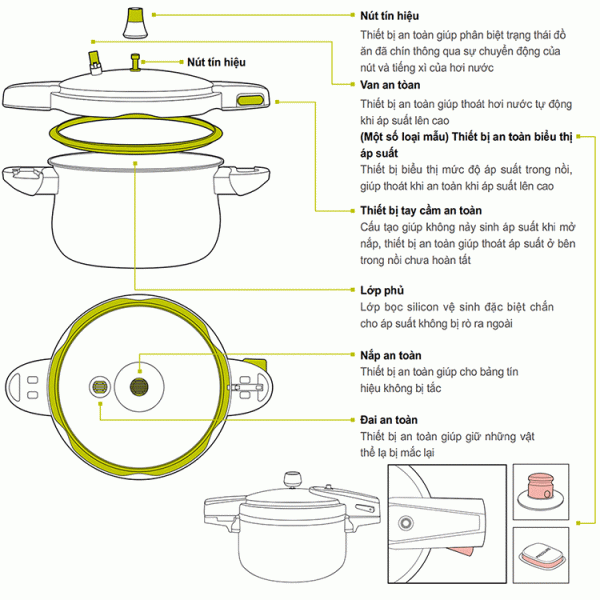 Nồi áp suất Inox POONGNYUN (PN) SQS11-20C với thiết kế 6 chế độ an toàn cho sản phẩm giúp bạn an tâm trong khi nấu : Khóa nắp an toàn (không tạo áp suất khi chưa khóa nắp), Van an toàn (tự động xả hơi nếu áp suất trong nồi vượt mức cho phép do bị nghẹt bọt thức ăn ở lần nấu trước đó cũng như cảnh báo áp suất còn trong nồi hay không), Van tín hiệu (cảnh báo áp suất còn trong nồi hay không), Nắp bảo vệ van an toàn và van tín hiệu (ngăn không cho thức ăn làm nghẹt van), Ron (không tạo áp suất khi ron lắp không đúng cách), Van an toàn (cảnh báo cho khách hàng biết còn áp suất bên trong nồi).
