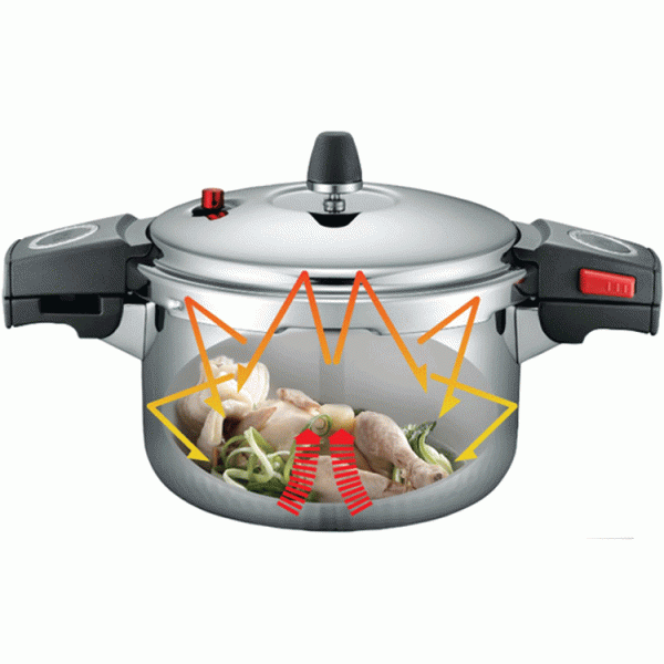 Toàn bộ cấu trúc được làm từ thép không gỉ cao cấp 430 3 lớp nguyên khối (đáy và thân) dầy 2.6mm và công nghệ đáy “Dimples”, nồi áp suất Inox POONGNYUN (PN) SQS11-20C tối đa hóa hiệu suất dẫn và giữ nhiệt làm thức ăn chín đều cực nhanh mà thức ăn không bị cháy khét, tiết kiệm thời gian cũng như chi phí nhiên liệu nấu và giảm sự phá hủy chất dinh dưỡng trong quá trình nấu ăn một cách hiệu quả. Hơn thế nữa, với công nghệ nấu áp suất khoa học để tăng điểm sôi của nước lên 120ºC và chịu được sự gia nhiệt lên đến 400ºC làm thức ăn chín mềm nhanh hơn so với khi nấu bằng áp suất điện.