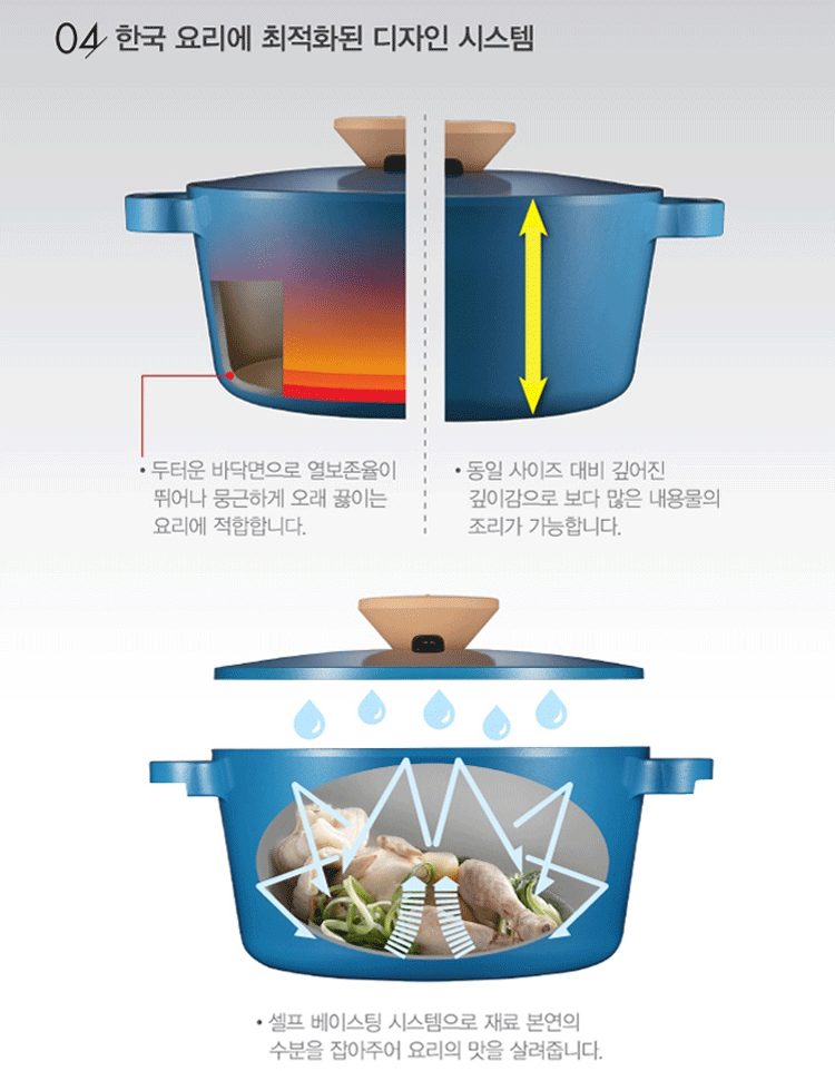 Nồi casserole Ceramic POONGNYUN (PN) Series Bliss Nordic BNPT-20C(IH) với nắp được thiết kế theo hệ thống “Self-based” chống trào và hạn chế tối đa lượng hơi nước thoát ra ngoài giữ hương vị và dinh dưỡng trong món ăn đặc biệt là những thực phẩm kỵ khí. Ngoài ra, miệng nồi được thiết kế uốn cong mềm mại giúp bạn đổ thức ăn ra đĩa mà không bị văng tung tóe.