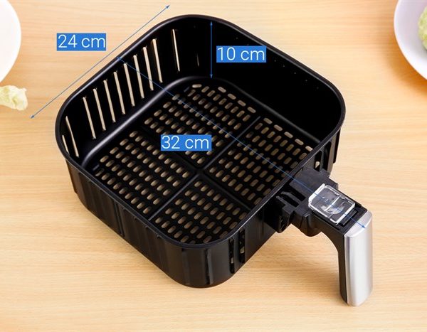 Sản phẩm có dung tích sử dụng lớn 5.5 lít, đủ để chiên nướng cùng lúc 2-3 miếng sườn hoặc các món ăn khác như khoai tây chiên, gà rán, bánh… phục vụ nhu cầu nấu nướng đa dạng của cả gia đình.