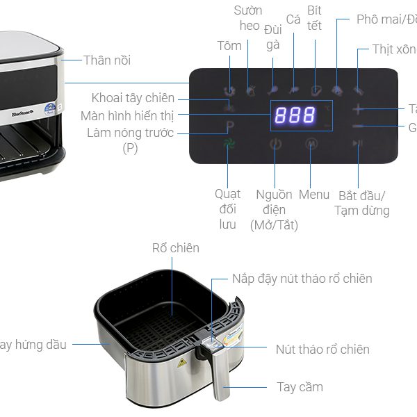 Nồi chiên không dầu Bluestone AFB-5878 5.5 Lít có thiết kế sang trọng, dung tích lớn, nhiều chế độ nấu đa dạng cùng nhiều tính năng tiện ích, mang đến cho người dùng những trải nghiệm nấu nướng tuyệt vời.