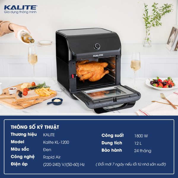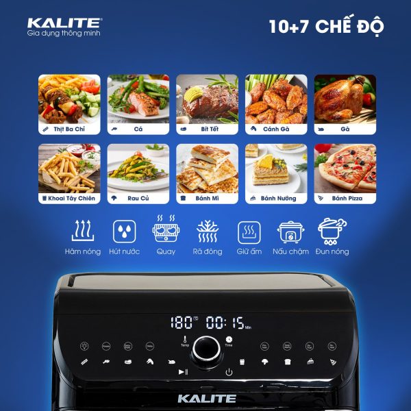 Đây là một trong những chiếc nồi chiên không dầu có dung tích lớn nhất nhà Kalite với 12L. Dung tích siêu khủng này giúp bạn có thể tha hồ nướng gà nguyên con, nướng tới 20 cánh gà cùng lúc, pizza với đường kính 20 cm và hơn 800g khoai tây,…