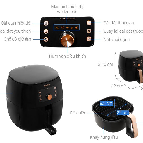 Nồi chiên không dầu Philips HD9860/90 XXL (7.3L)