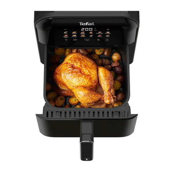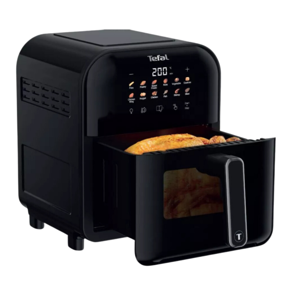 Nồi Chiên Không Dầu Tefal EY821868 được trang bị công nghệ Rapid Air, công suất 1550 – 1835W để làm chín thực phẩm đều và nhanh chóng, giảm lượng dầu mỡ so với phương pháp chiên truyền thống. Thiết bị có màn hình cảm ứng màu, dễ dàng thao tác và điều chỉnh 12 chương trình nấu cài sẵn. Cửa kính xuyên thấu cho phép bạn quan sát quá trình đồ ăn được nấu. Với dung tích 6 lít , đáp ứng nhu cầu nấu nướng của gia đình 4 – 6 người.