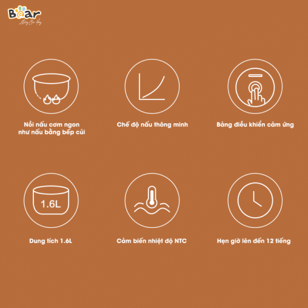 – Chức năng giữ ấm: Sau khi nấu xong, nồi cơm điện Bear 1.6L tự động chuyển sang chế độ giữ ấm, giúp thức ăn luôn ấm nóng và bảo toàn dinh dưỡng.