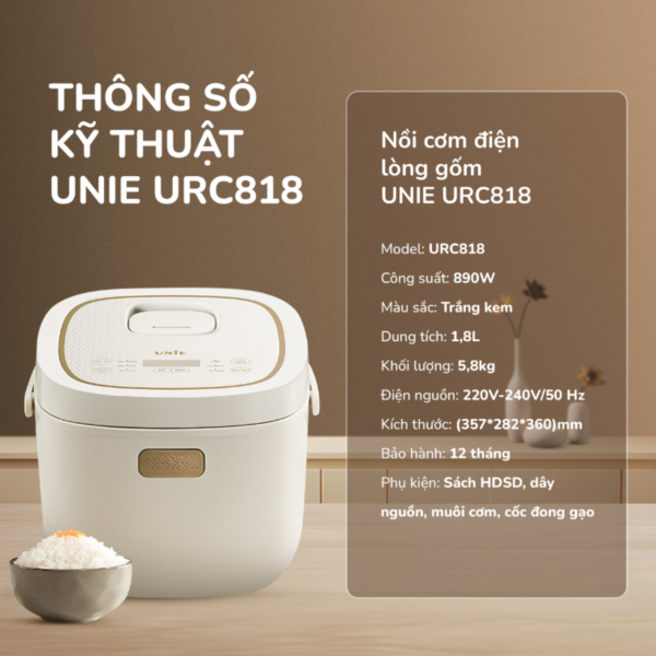 Nồi cơm điện lòng gốm cao cấp UNIE URC818 (1.8L)