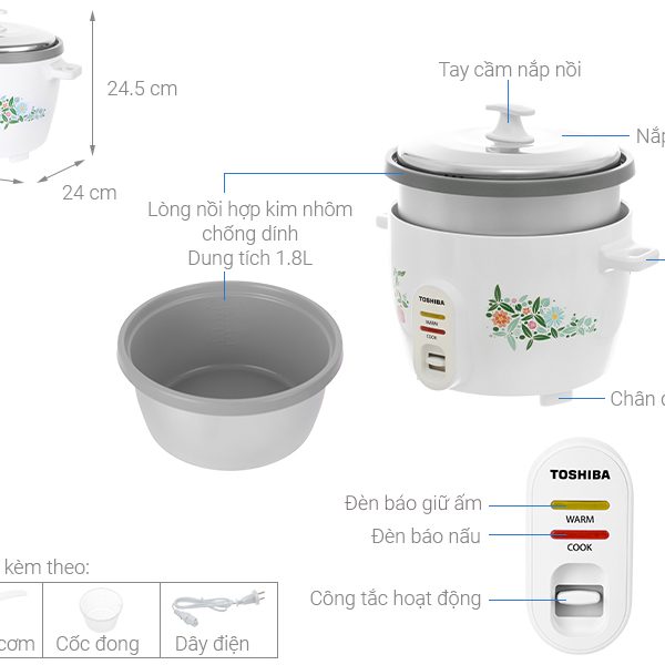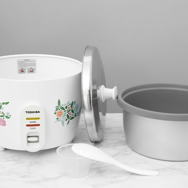 Nồi cơm điện Toshiba RC-18MH1PV(F) (1.8L) kiểu dáng mềm mại, họa tiết trang nhã, thiết kế nắp rời với dung tích 1.8 lít dùng cho gia đình 4 – 6 thành viên