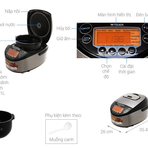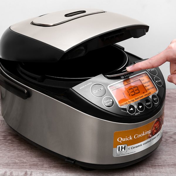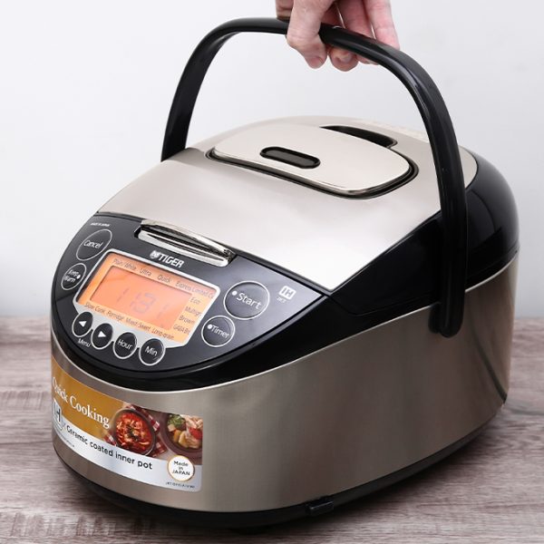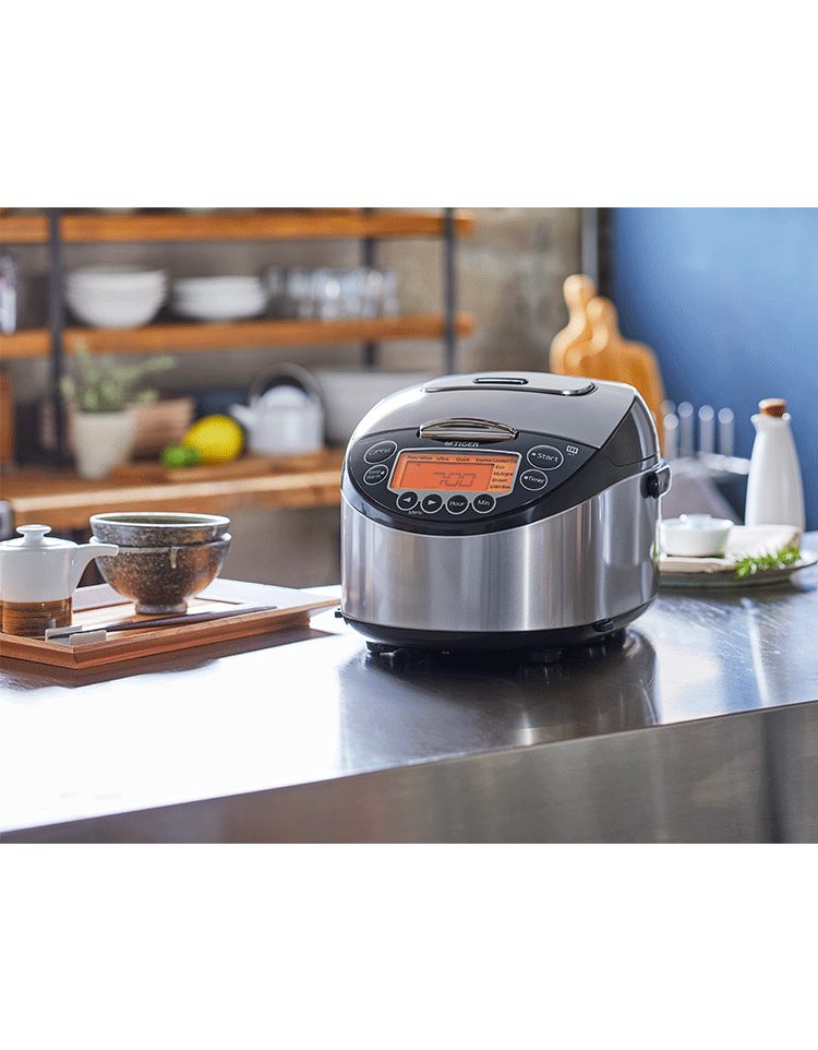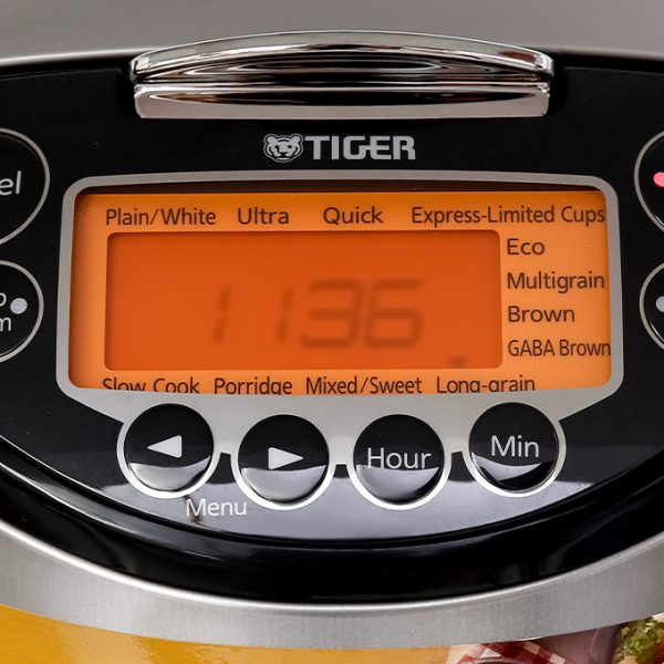 Nồi cơm điện tử cao tần Tiger JKT-D10V với thiết kế bảng điều khiển màn hình LCD điều chỉnh nút nhấn Menu thông minh “lùi và tới” mà không cần nhấn theo thứ tự tuần hoàn, hiện đại, đơn giản và dễ dàng sử dụng với 12 chức năng : 11 chức năng nấu cơm (Nấu gạo trắng, Nấu cơm cực ngon, Nấu cơm nhanh, Nấu tiết kiệm điện, Nấu gạo trộn ngũ cốc, Nấu gạo lức, Nấu gạo lức nảy mầm, Nấu cháo, Nấu gạo nếp – Nấu cơm trộn, Nấu gạo hạt dài), Nấu cơm siêu tốc (Express-Limited Cups), hầm và giữ ấm đáp ứng những bữa cơm đa dạng cho gia đình bạn. Không chỉ vậy, chế độ giữ ấm cơm tự động lên đến 24 giờ mà không bị khô rất tiện lợi và tiết kiệm chi phí cho người nội trợ không có nhiều thời gian nấu cơm.