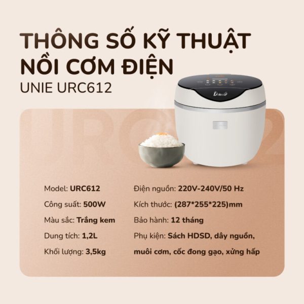 Nồi cơm điện UNIE URC612 – Chọn cơm giảm đường, Ngon khỏe vẹn tròn