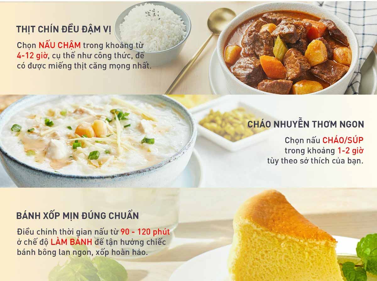 Sản phẩm còn tích hợp tính năng hẹn giờ tối đa 24 tiếng giúp người dùng kiểm soát thời gian nấu nướng một cách chủ động hơn.