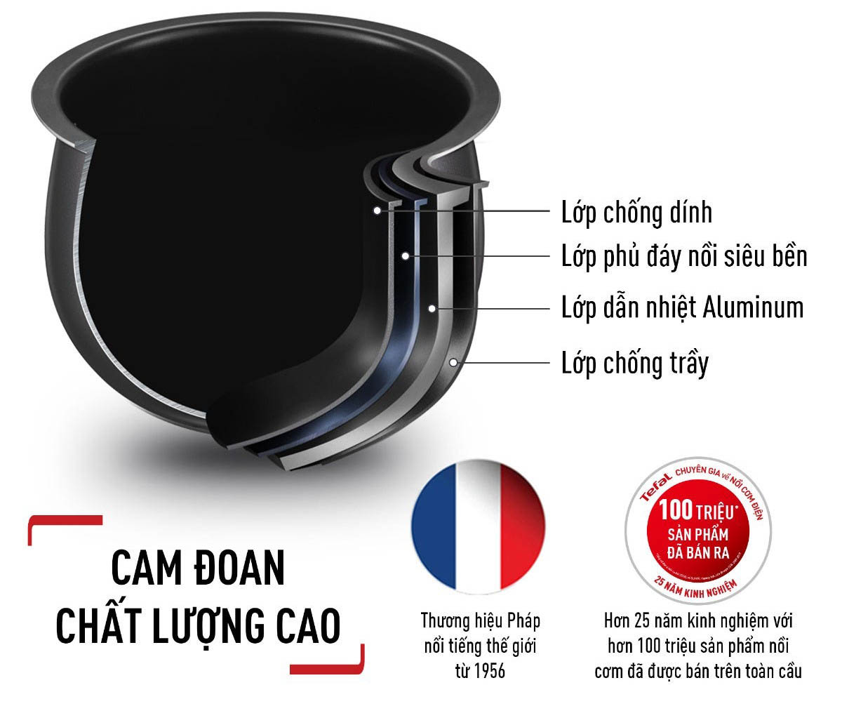 Lòng nồi cơm điện dạng niêu dày 4mm (Độc quyền Tefal) và được phủ chống dính an toàn khi dùng, dễ dàng vệ sinh. Lòng nồi chống dính giúp cơm không bị dính vào đáy nồi khi nấu, thuận tiện xới cơm ra bát.