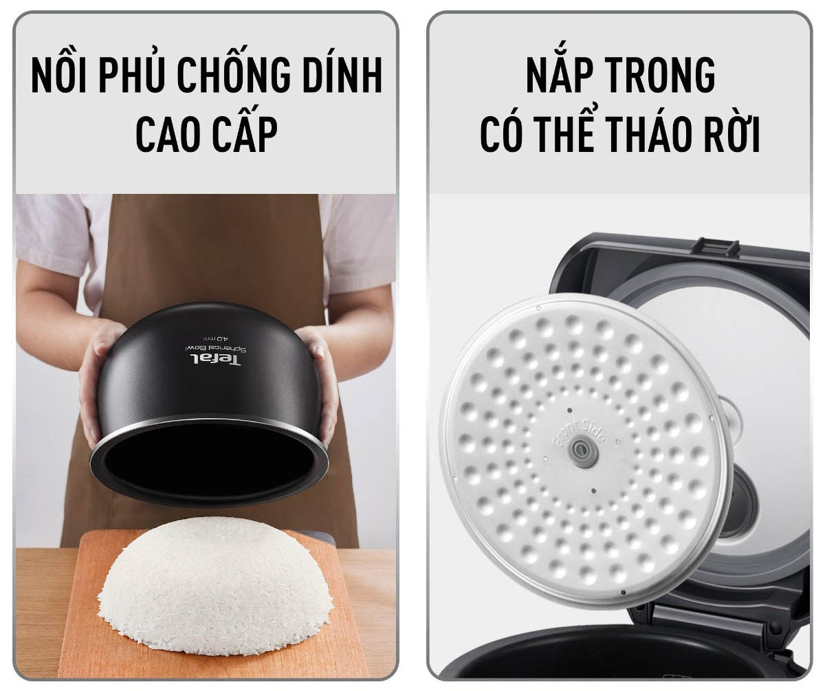 Nồi cơm điện tử Tefal RK737868 1.8 lít thiết kế dạng nắp gài chắc chắn, giữ nhiệt tốt, dễ dàng đóng/mở. Phần nắp phụ bên trong nồi cơm có thể tháo rời được, thuận tiện vệ sinh hơi nước đọng xung quanh.
