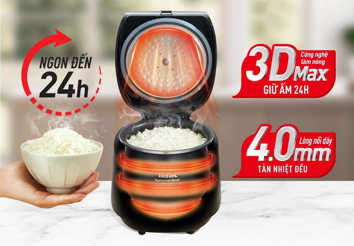Bên cạnh đó, công nghệ nhiệt 3D còn giúp nồi cơm điện có khả năng giữ ấm lên đến 24 tiếng, hạn chế lượng nước từ nắp chảy xuống.