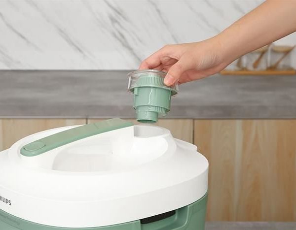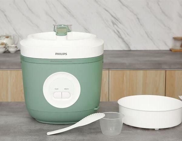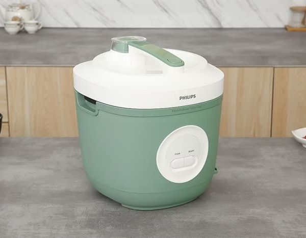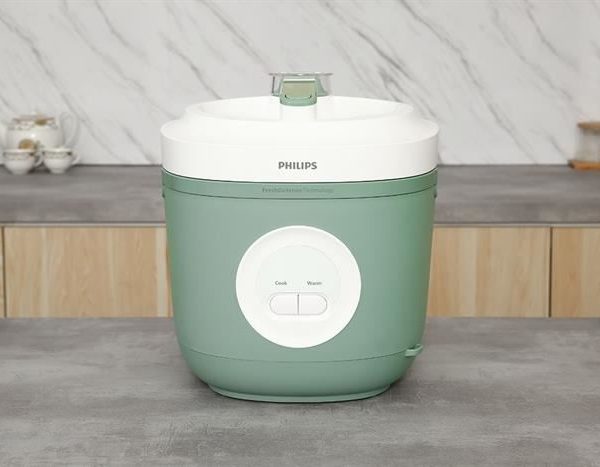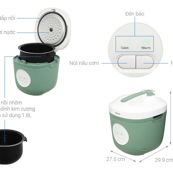 – Nồi cơm điện Philips có thiết kế hiện đại lạ mắt với tông màu xanh bạc hà trẻ trung, năng động. Nồi có quai xách giúp người dùng thuận tiện di chuyển.
