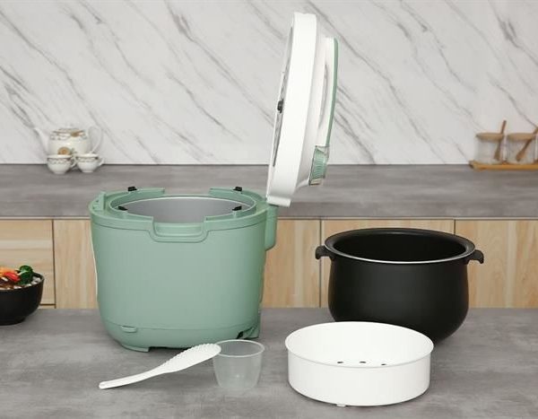 – Các phụ kiện đi kèm gồm muỗng cơm, cốc đong và xửng hấp.