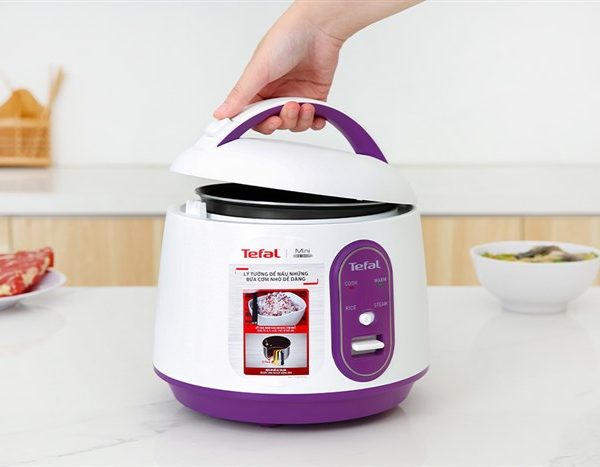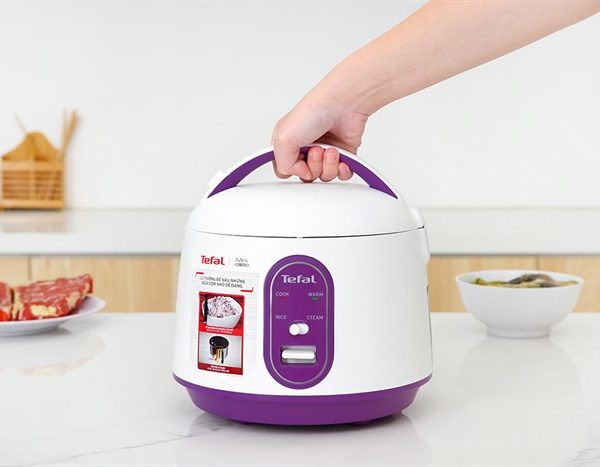 – Nồi cơm điện Tefal sở hữu lớp vỏ ngoài có màu trắng kết hợp tím nhẹ nhàng, thanh lịch nhưng không kém phần nổi bật.