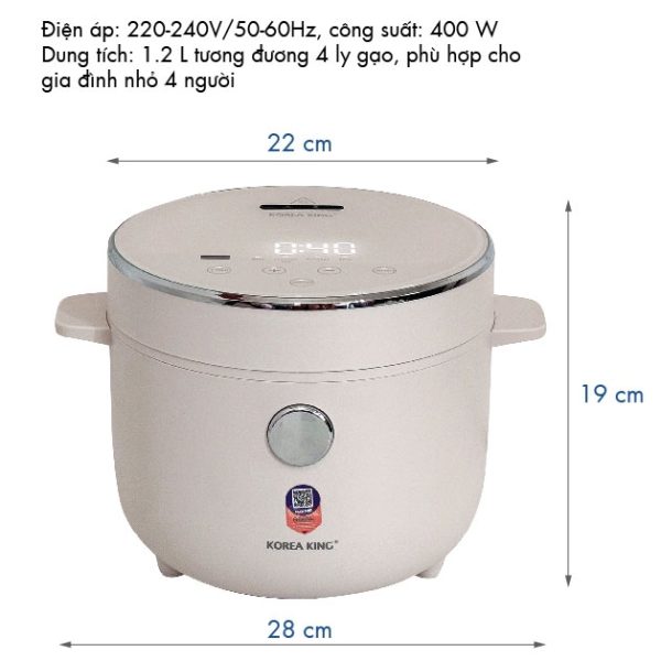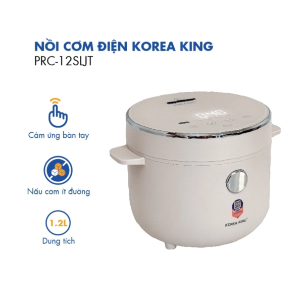 Korea King PRC-12SLJT có kích thước 22cm x 28cm x 19cm, trọng lượng 2.5kg, thiết kế màu sắc trang nhã với tay cầm 2 bên dễ dàng di chuyển nồi.