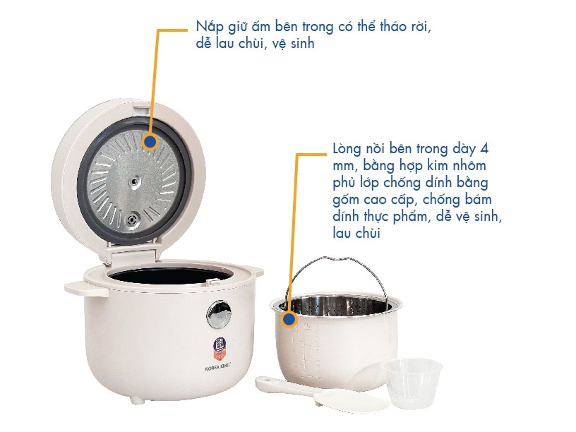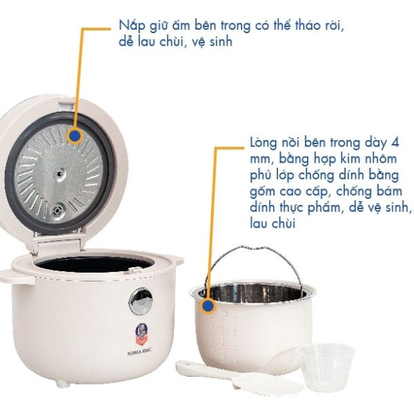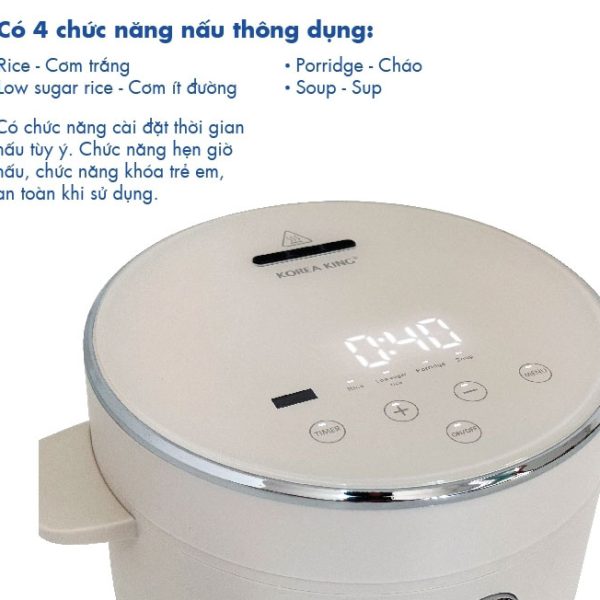 Nồi cơm điện Korea King có chức năng cài đặt thời gian nấu, chức năng khóa trẻ em đảm bảo an toàn khi sử dụng