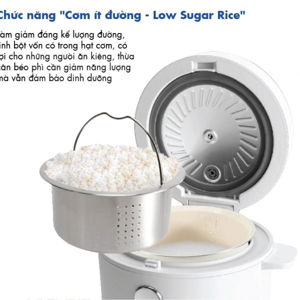 Với chức năng “Cơm ít đường – Low Sugar Rice” sẽ làm giảm đáng kể lượng đường, tinh bột vốn có trong hạt cơm nhằm bảo vệ sức khỏe, có lợi cho những người ăn kiêng, thừa cân béo phì cần giảm năng lượng mà vẫn đảm bảo dinh dưỡng.