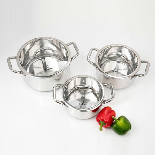 Nồi inox 5 đáy cao cấp Kalpen Glanzer được thiết kế với đa dạng kích thước, đáp ứng nhu cầu nấu nướng phong phú của mọi gia đình. Với ba size phổ biến: 18cm, 20cm và 24cm, người dùng có thể dễ dàng lựa chọn dung tích phù hợp với khẩu phần ăn và loại món cần chế biến.