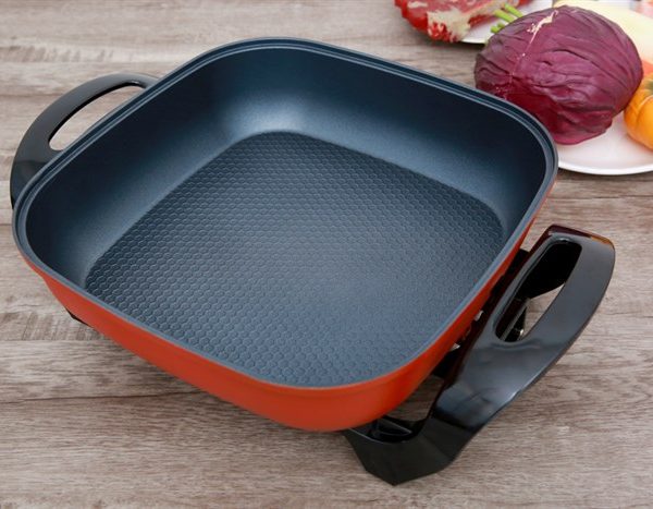 Lòng nồi lẩu điện làm bằng chất liệu hợp kim nhôm phủ lớp chống dính bền bỉ, an toàn, không phản ứng với thức ăn khi đun nấu