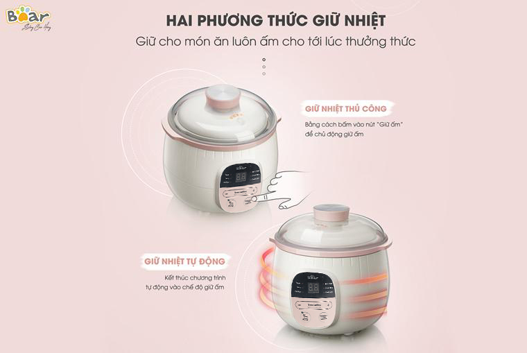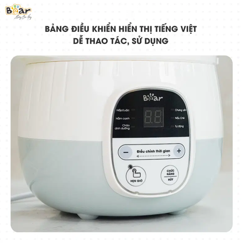 Sản phẩm được trang bị chức năng hẹn giờ nấu thông minh lên tới 9.5 giờ. Ngoài gia, nồi nấu chậm Bear SUBE001 còn có khả năng giữ nhiệt tốt, phù hợp với những người bận rộn, đặc biệt là phụ nữ sau sinh, các bạn sinh viên phải học tập làm việc cả ngày nên có ít thời gian chuẩn bị bữa ăn.