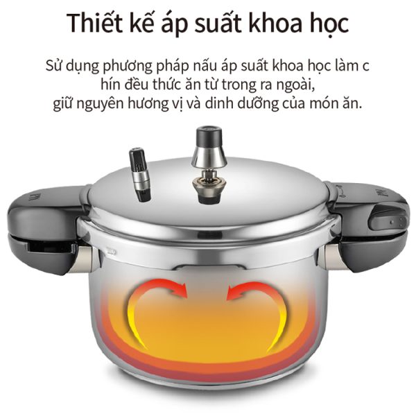 Toàn bộ cấu trúc thép không gỉ cao cấp SUS304 với đáy 3 lớp [STS+ALU+STS] dầy 3.6mm của nhà sản xuất thép uy tín “POSCO”, nồi áp suất Inox IH POONGNYUN [PN] HNVPC-10(IH) tối đa hóa hiệu suất dẫn và giữ nhiệt làm thức ăn chín đều cực nhanh mà thức ăn không bị cháy khét, tiết kiệm thời gian cũng như chi phí nhiên liệu nấu và giảm sự phá hủy chất dinh dưỡng trong quá trình nấu ăn một cách hiệu quả. Hơn thế nữa, với công nghệ nấu áp suất khoa học để tăng điểm sôi của nước lên 120ºC và chịu được sự gia nhiệt lên đến 400ºC làm thức ăn chín mềm nhanh hơn so với khi nấu bằng nồi áp suất điện.