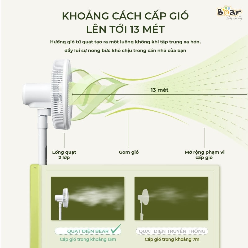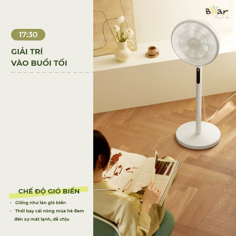 Quạt cây Bear điều khiển từ xa SB-QC47K có cơ chế vận hành êm ái. Khi quạt hoạt động, tiếng ồn phát ra tương đối nhỏ, về cơ bản không ảnh hưởng đến giấc ngủ các thành viên trong gia đình, nhất là con trẻ, người dễ mất ngủ và người già.