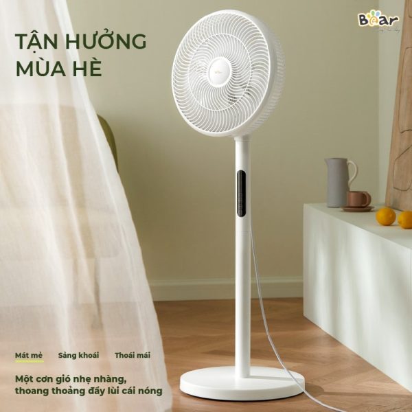 Quạt cây Bear điều khiển từ xa D47F2 có thiết kế cánh quạt thông minh, với 9 cánh tiện dụng, không chỉ làm mát sâu mà còn tăng khả năng tản gió ra mọi ngóc ngách căn phòng.