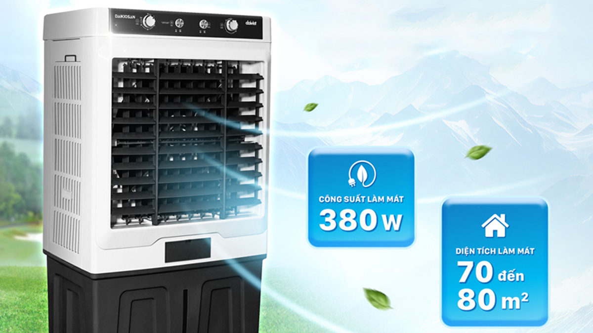 Daikiosan DM203 hoạt động với công suất 380W, cùng với tốc độ gió lớn lên đến 9.8-11m/s và lưu lượng gió thổi ra từ 11.500 – 12.000 m3/h. Từ đó tạo được làn gió mạnh và mát hiệu quả, phù hợp với diện tích làm mát từ 70 – 80m2.