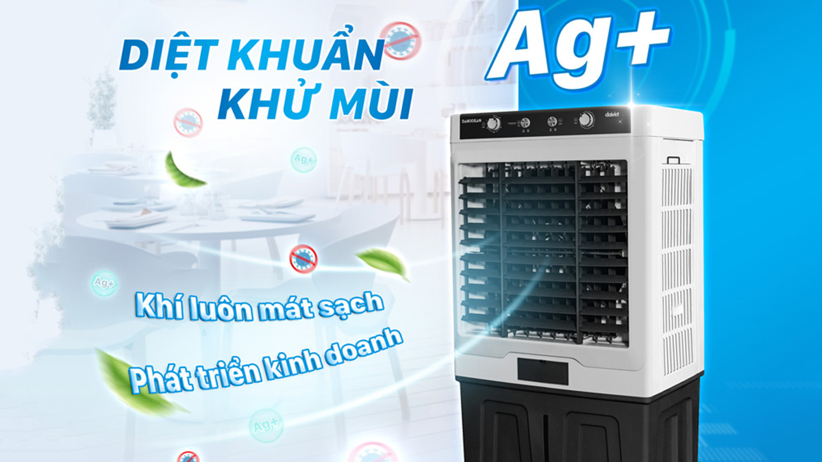 Sản phẩm được trang bị công nghệ tiên tiến diệt khuẩn Ag+, giúp tiêu diệt nhiều loại vi khuẩn và sinh vật gây hại trong không khí. Từ đó đảm bảo không chỉ mang lại làn gió tươi mát, mà không khí còn sạch sẽ và thoải mái. Công nghệ này cũng hiệu quả trong việc khử mùi hôi khó chịu, giúp không khí trong phòng luôn thơm thoáng cũng như trong lành.