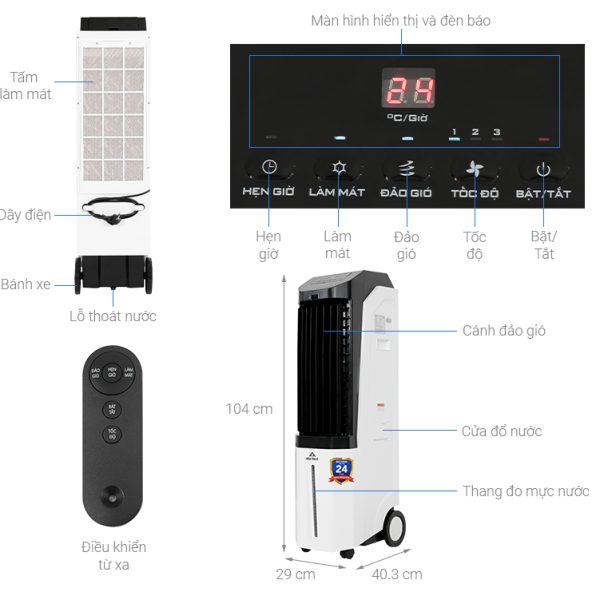 – Điều chỉnh 3 tốc độ gió, bật/tắt chế độ làm mát, chế độ đảo chiều gió điều chỉnh theo nhu cầu sử dụng.