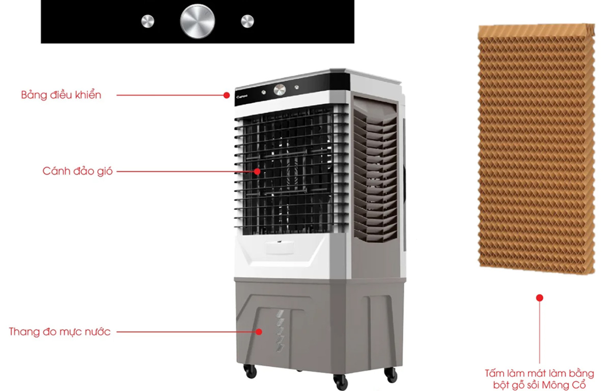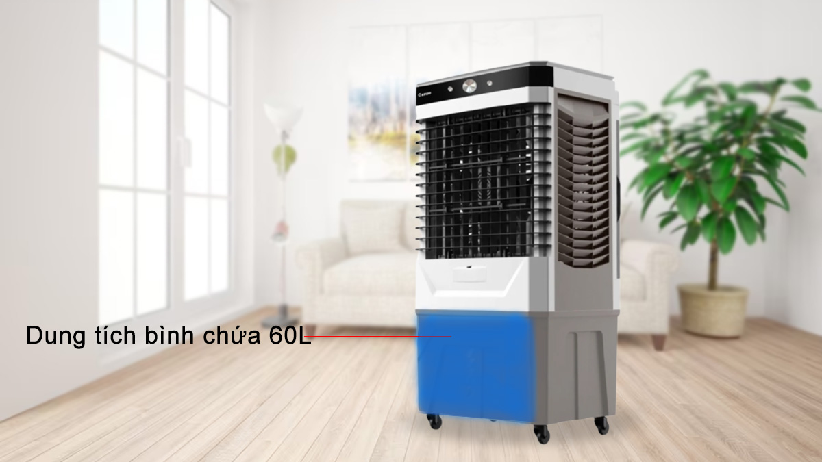 Sản phẩm có diện tích làm mát thực từ 30 – 60m², luồng gió siêu mạnh, thích hợp với không gian mở như phòng khách, cửa hàng, quán cafe.