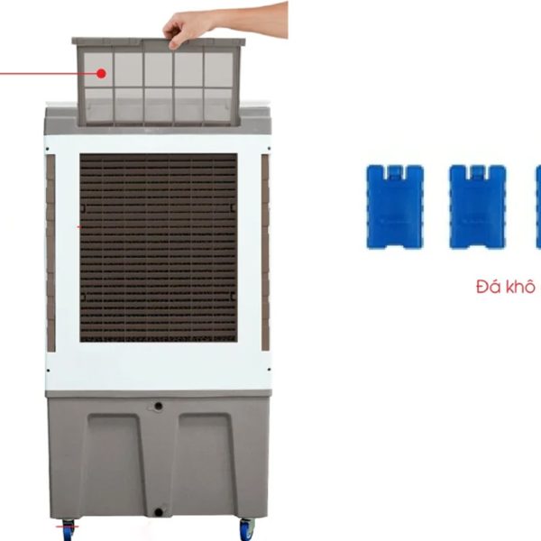 Quạt điều hòa Rapido Everest 9000M có thang đo hiển thị mực nước, bạn có thể tiếp nước từ phía trên dễ dàng và có hộp đá khô làm mát, giúp tăng sự tiện lợi cho quá trình sử dụng.