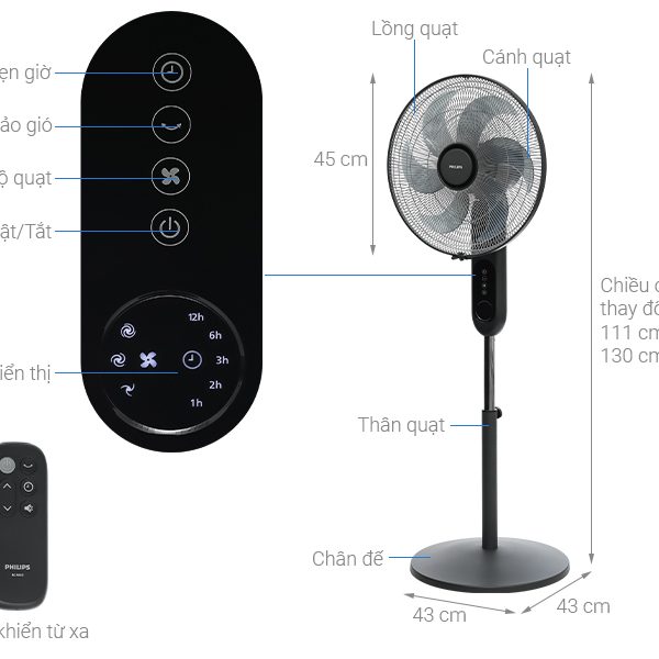 Philips CX1520/01 được trang bị bảng điều khiển cảm ứng trực quan trên thân quạt cùng remote điều khiển từ xa, mang đến sự tiện lợi tối đa cho người dùng. Bạn có thể thay đổi tốc độ gió, bật/tắt quạt hay hẹn giờ mà không cần phải đứng dậy, rất phù hợp với những lúc nghỉ ngơi hoặc làm việc.