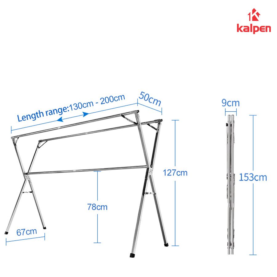 Chiều dài tối đa của chiếc sào phơi quần áo thông minh Kalpen có thể lên tới 200cm (tức 2m) giúp bạn có thể thoải mái phơi đồ trên diện rộng. Chiều rộng tối đa khi kéo giãn sào phơi là 67cm cực kỳ thông thoáng khi bạn phơi nhiều quần áo cùng 1 lúc.