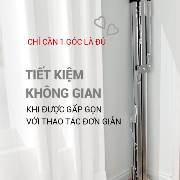 - Dễ dàng lắp đặt, dễ gấp, dễ mở và tiết kiệm không gian nhà ở: giá phơi quần áo inox thông minh sử dụng tương đối dễ dàng, bạn có thể gập sào phơi đồ lại thành một thanh inox gọn nhẹ và cất vào trong góc sau khi đã sử dụng xong.