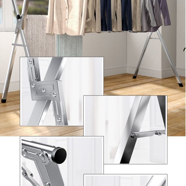 Sự chắc chắn trong kết cấu của chiếc sào phơi đồ đa năng còn thể hiện ở hệ thống các thanh thép kết nối với nhau bằng các khớp nối gập bằng thép vuông góc. Các khớp nối này được cố định chung bằng các đinh tán bằng thép, tạo cho tổng thể chiếc sào phơi quần áo 1 vẻ ngoài đầy thanh thoát và chắc chắn.