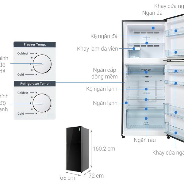 – Có thiết kế các ngăn kệ bên trong và trên cánh tủ để phân loại và sắp xếp thực phẩm theo nhu cầu.